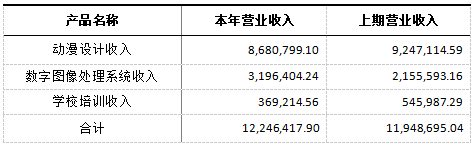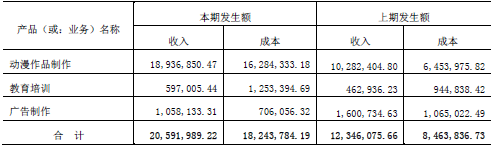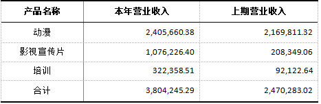 2017年,随着公司动漫设计制作水平的提高,动漫影视作品制作收入较上年度占总收入的比重增加8.68%。教育培训收入占比较上年度减少0.85%,广告制作与发布收入占比较上年度降低7.83%。