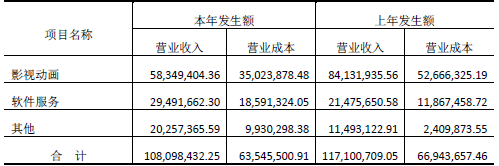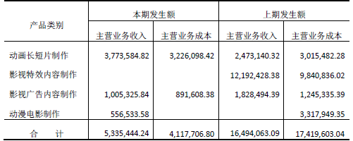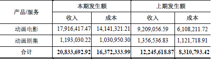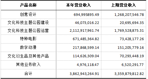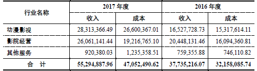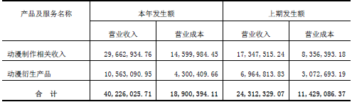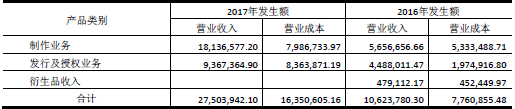 2017 年,公司参与制作《哪吒降世》、《熊出没》电影,使得电影制作服务收入较上年增加了245.44%。广告制作服务收入较上年增加了40.07%,由于衍生品业务尚未大规模产生收入,衍生品收入较上年减少了39.22%。