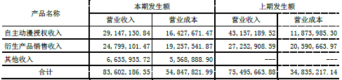 2017年,公司实现产品销售收入降幅达8.74%,产品授权收入降幅达29.15%,因市场竞争环境加剧,授权收入规模略有缩减。