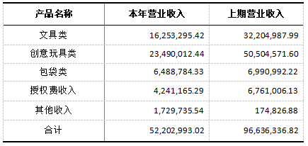 2017 年,公司授权动漫玩具产品收入较2016 年减少77.11%,主要因为报告期内授权产品停止生产。益智玩具产品收入较2016 年增长44.04%,由原先的授权玩具产品转向为自主研发益智玩具的生产。游戏已停止经营。