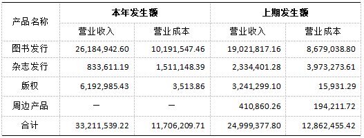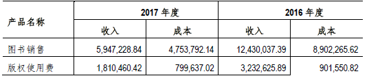 2017年,公司新书《武道宗师》、《斗罗大陆》等图书的订购量有明显增长,图书发行的营业收入增长了37.72%。版权收入与上期数相比增长了91.06%,提升了版权在营业收入中的占比。