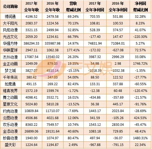 4月中下旬,上市和挂牌的动漫公司陆续发布了2017年年度报告。