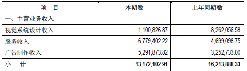 2017年,视觉系统设计收入较上年度减少86.68%,主要因为传统业务视频视觉系统收入的萎缩,公司在收入方面偏向服务收入和广告收入为主。广告制作收入较上年度增62.69%,服务收入较上年度增加44.27%。