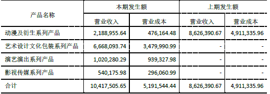 2017年,公司营业收入比上年同期大幅增加,主要因为产品系列增加,公司由前期的动漫及衍生产品为主拓展到以艺术设计、文化包装、演艺演出等文创产业和原有动漫类业务共同发展的阶段。