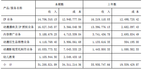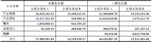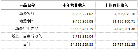 湖南山猫吉咪传媒股份有限公司主营业务为动漫作品的制作、发行,动漫形象授权以及少量衍生品外销业务。公司收入主要来源于版权收入。