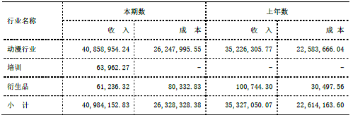 北京妙音动漫文化股份有限公司主营业务为动漫影视作品的制作、授权及原创动漫作品衍生品的开发、销售。收入来源于原创动漫IP品牌价值变现。