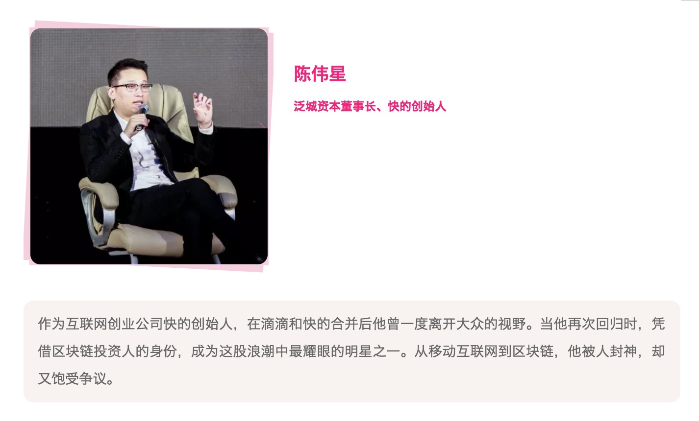 艾诚:你曾经是快的的创始人,后来沉寂两三年,这一次以区块链投资人的身份重现,你投资了很多区块链的项目。我忍不住好奇,你是真的信仰区块链,还是认为在区块链的世界里你可以重整旗鼓?