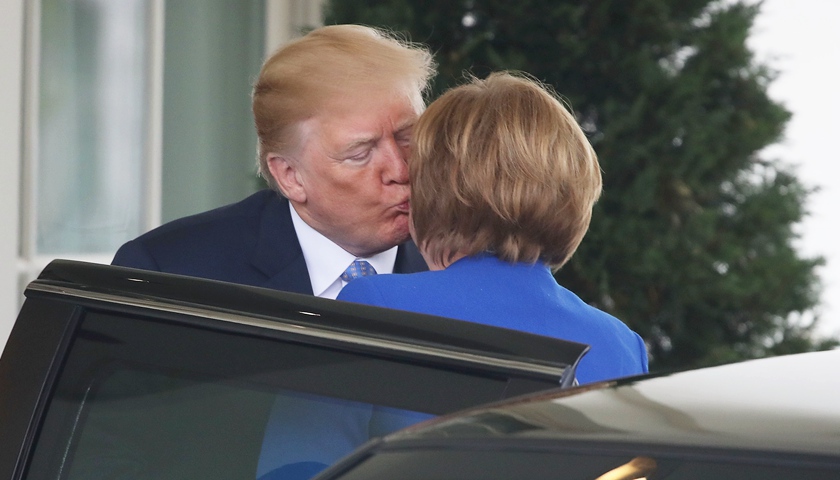 据德国之声报道,与上次默克尔访美时特朗普拒绝与其握手的尴尬场面不同,此次特朗普在白宫热情欢迎默克尔,与默克尔握手、行贴面吻,还称默克尔为“了不起的女性”。