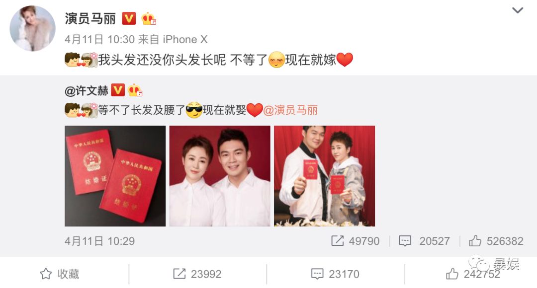 前不久马丽在微博上突如其来的宣布了结婚的消息,字里行间透露着满满的幸福和甜蜜,围观群众也纷纷送上祝福。