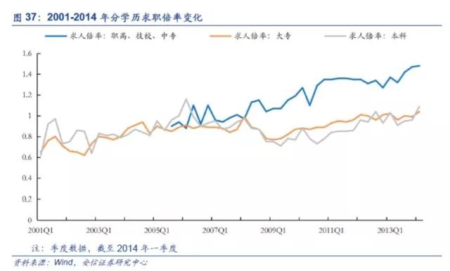 首先是产业,产业需要转型升级。中国要从制造大国转变为制造强国,人才需求加大,为职教发展带来上升空间。