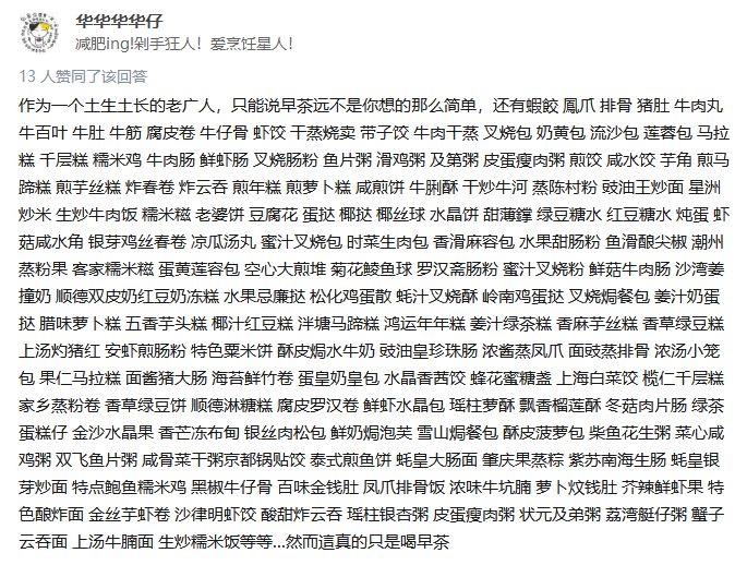 对于天真的吃货小孩,早茶餐桌上的社交与她/他无关,它只是意味着虾饺 凤爪 排骨 猪肚 牛肉丸 牛百叶 牛肚 牛筋 腐皮卷 牛仔骨 虾饺 干蒸烧卖 带子饺 牛肉干蒸 叉烧包 奶黄包 流沙包 莲蓉包 马拉糕 千层糕 糯米鸡 牛肉肠 鲜虾肠 叉烧肠粉 鱼片粥 滑鸡粥 及第粥 皮蛋瘦肉粥 煎饺 咸水饺 芋角 煎马蹄糕 煎芋丝糕 炸春卷 炸云吞 煎年糕 煎萝卜糕 咸煎饼 牛脷酥 干炒牛河.....