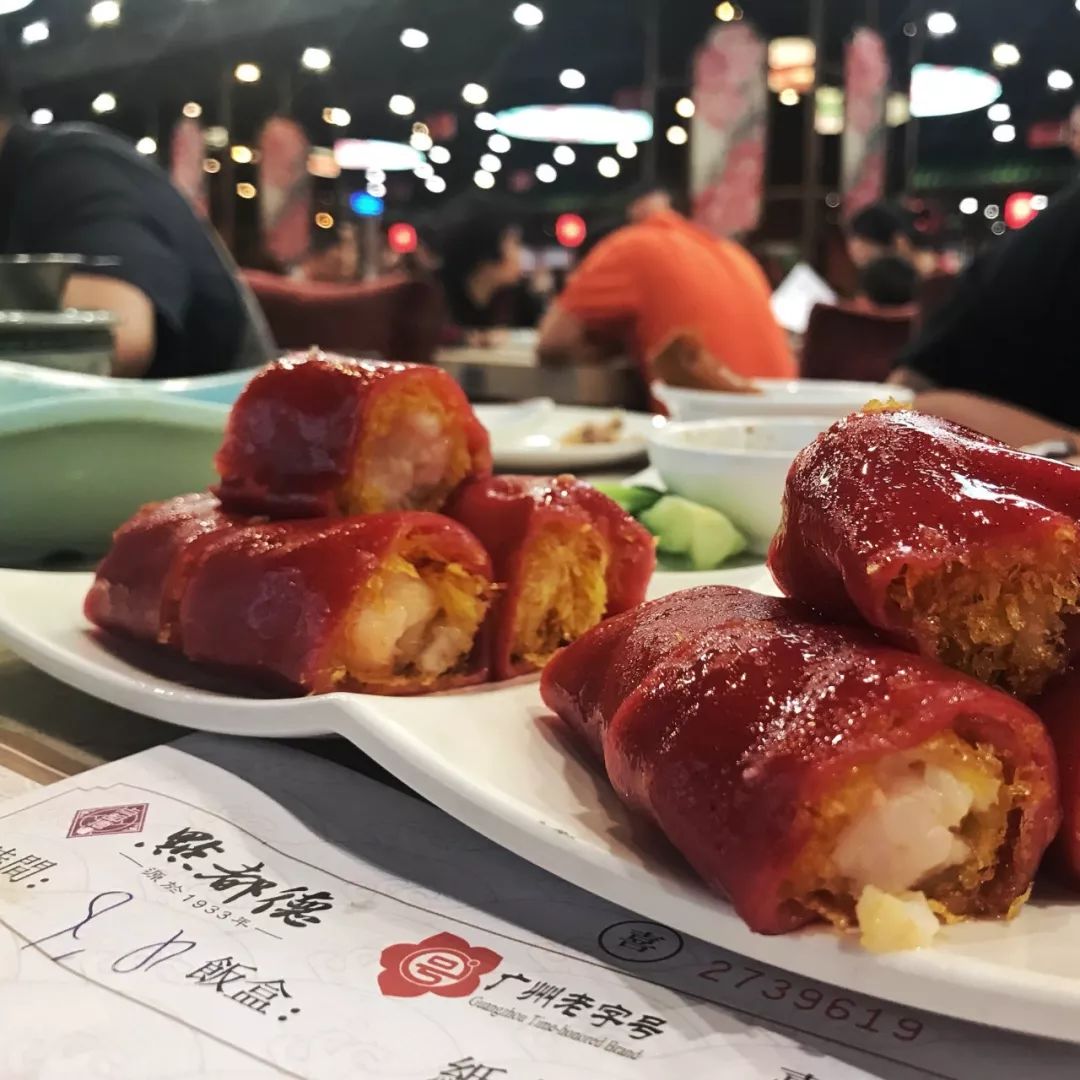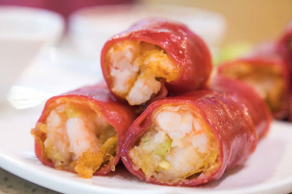 用红米浆做成的滑嫩粉皮,包裹着一层松脆的炸物,最里面的便是鲜虾仁。沾上些许酱油,放入口中,虾仁的鲜美搭配松脆、软糯,口感十分丰富。