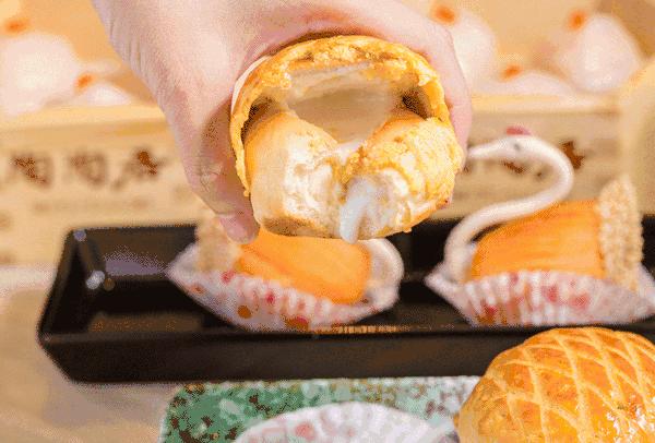 推荐水牛奶菠萝包,水牛奶按双皮奶的做法封入酥皮菠萝包中,分分钟就爆汁了。