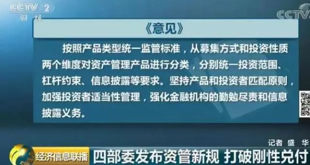 4月27日,百万亿规模的资管行业终于迎来大资管监管规定的正式实施。在经历了5个多月的社会公开征求意见,并接受来自市场近2000条修改意见后,央行、证监会等4部委联合发布了《关于规范金融机构资产管理业务的指导意见》,新规明确了资产管理业务不得承诺保本保收益,打破刚性兑付。