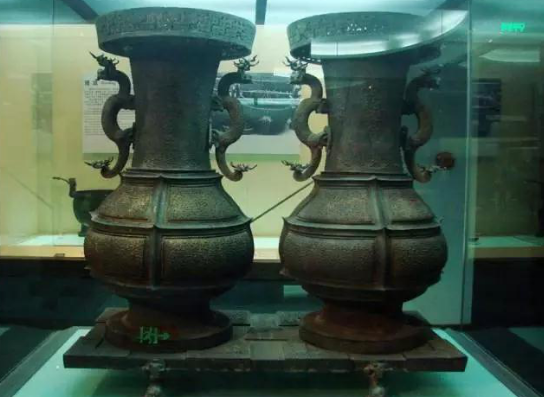 这是古代用以冰(温)酒的器具。它由内外两件器物构成;外部为鉴,鉴内置一尊缶。鉴与尊缶之间有较大的空隙,夏天可以放入冰块,冬天则贮存温水,尊缶内盛酒,这样就可以喝到“冬暖夏凉”的酒。
