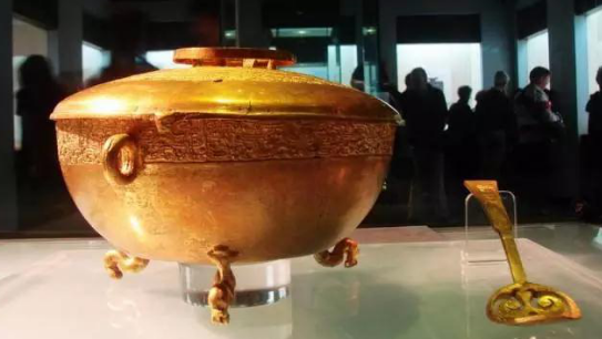 至迟到商代时,我国就出现黄金制品,但多为一些片饰。而此盏是仿铜的金制容器,反映了墓主人的特殊身份。这是目前所见我国先秦金器中最大最重的1件。