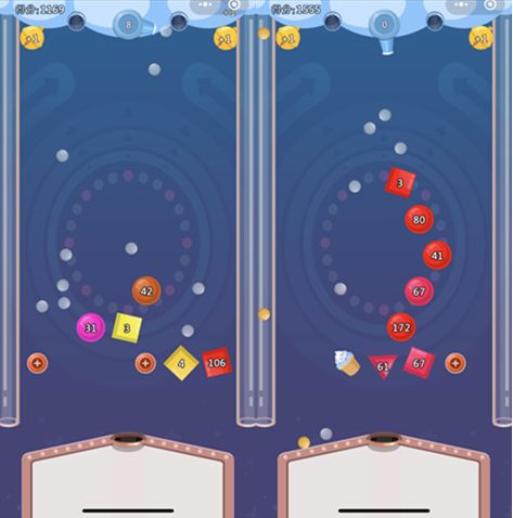 玩家可以决定小球下落的方向,通过释放小球使其与屏幕中的方块、球状等物体进行撞击,每弹一次下方物体上的数值会减一,玩家的分数随之增加。游戏的主要目的是将源源不断上升的物体清除,若物体上升至屏幕上方临界点则游戏失败。