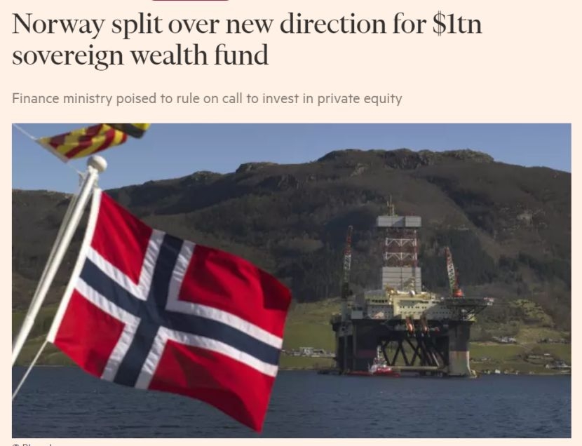 彭博社报道,今年4月以来,挪威政府内部也出现分歧,部分官员认为应该给主权财富基金“松绑”,允许其参与非公开上市的私募股权投资。