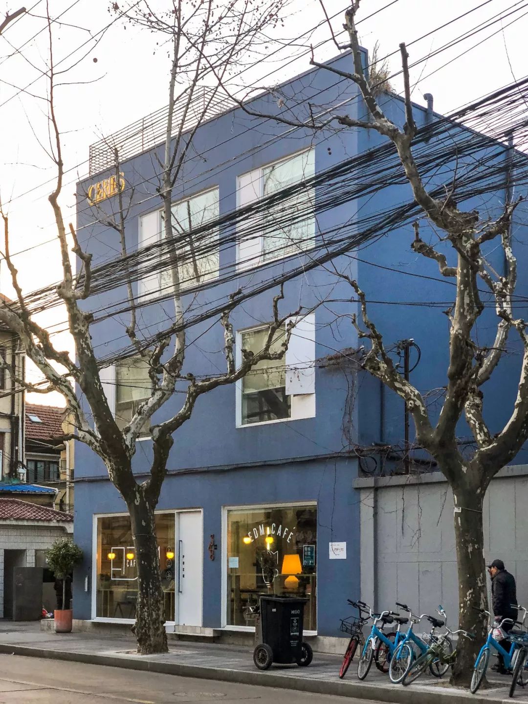 建国西路上这栋小楼,也可以算是早期网红里的佼佼者吧,哦,不,是网蓝,毕竟,整栋楼都是蓝色的。