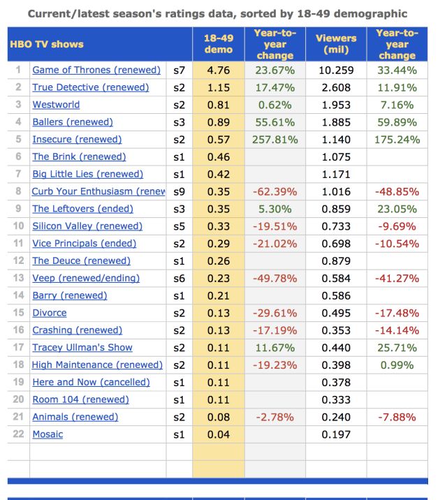 美剧的停更原因各不相同,但最主要的评判标准还是收视率。有的美剧一上档播放率就惨不忍睹,惨遭下架。例如HBO 2018年2月份上档的情景喜剧Here and Now《此时此地》,自播出始收视率低迷,每百万平均收视率仅为0.378,相较西部世界第二季收视率差距明显,惨遭淘汰可谓是意料之内。