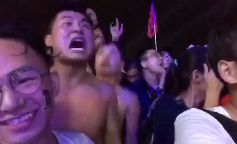 曾经的大花臂主唱吴狄换上了这身红蓝战袍,以至于台下对他们再熟悉的歌迷也是压根儿没认出他是谁?!(放大看确实难以辨认……)