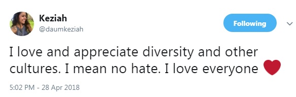 网上的负面言论似乎并没有吓倒Daum,她表示,如果再来一次,她还会选择穿这件旗袍。她再次在推特中强调自己穿旗袍毫无恶意:“我喜欢、欣赏多元性和其他文化。我毫无恶意。我爱每个人。”