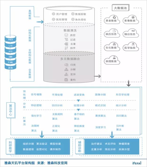 在数据层面,建立统一的数据质控标准,实现医疗数据的池化、影像数据的预处理以及多类数学算法的应用。
