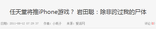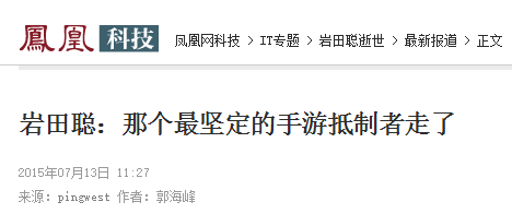 媒体报道是标题党,但岩田聪抵制手游的印象却由此在很多人心中扎下根了。