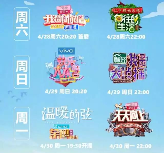此前,湖南卫视匹配五一小长假,将《我想和你唱3》《向往的生活2》《快乐大本营》《我是大侦探》《温暖的弦》《天天向上》6档节目整体挪后一天,最终湖南卫视在五一假期取得全国网全天份额3.54%,领先第二名省级卫视73%以上的收视新高。