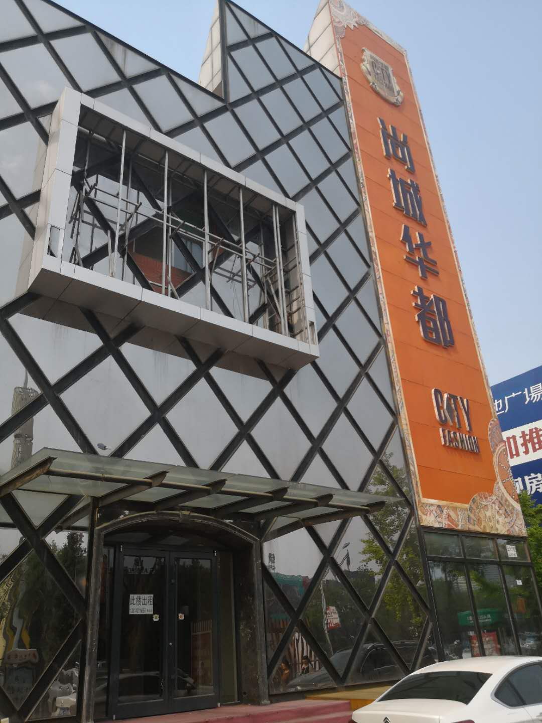 (售楼处已经关闭,门上写着“此楼出租”)