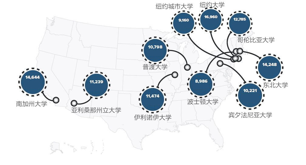 因为美国高校对留学生收费普遍很高,如果将国际学生看作是高校“创收”的好方法,下面的发现会让外界看清哪些大学因此“富有”。