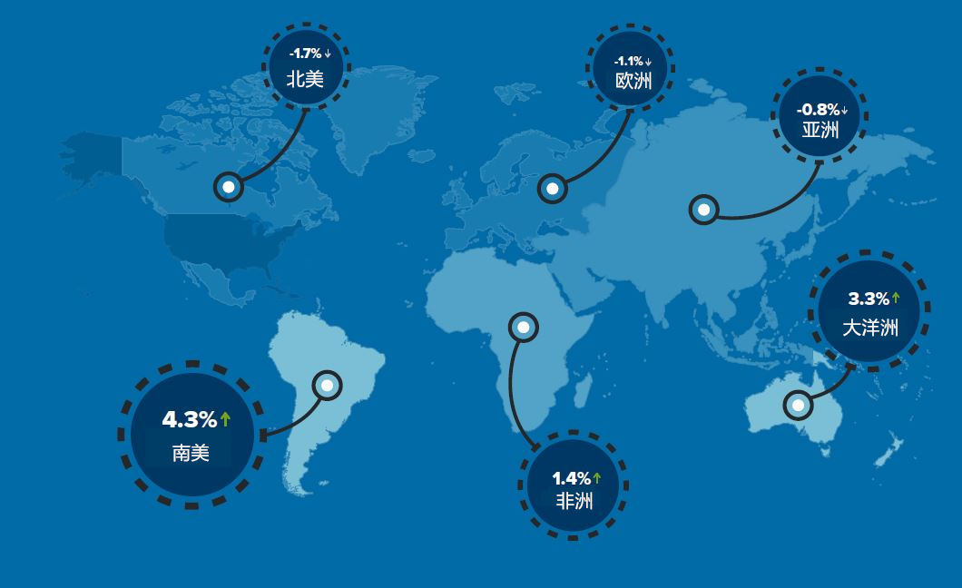 相比之下,南美洲学生的留美趋势强劲,增幅最大。巴西和阿根廷学生的人数分别增长13.1%和6.7%。