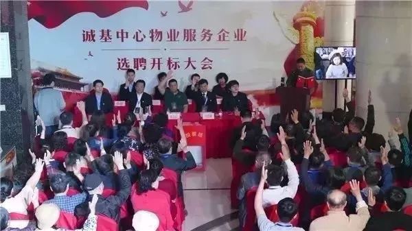 4月26日上午,最牵动人心的时刻到来——诚基中心物业服务企业选聘大会在丽晶酒店一楼大厅举行。会上,48位业主代表全票选聘今晚报大厦物业管理中心为新一任的“管家”。
