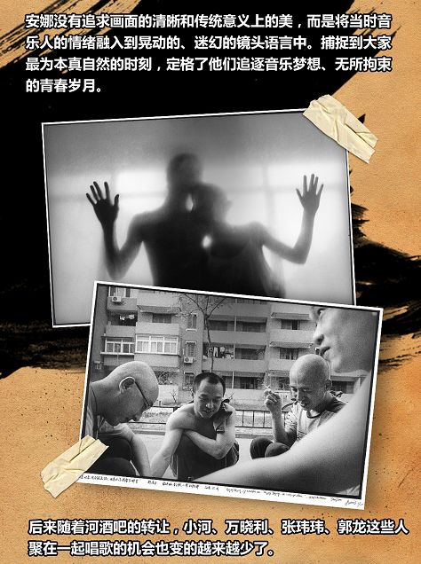 河酒吧承载了无数个与青春有关的记忆,在那里满是对理想的憧憬,从心底迸发的歌声,或嗟叹或高歌,无一不是情绪使然。彼时,身为法国《解放报》摄影师的安娜,喜爱音乐的她在河酒吧结识了小河、万晓利、张玮玮、郭龙这帮自由亲切的朋友。