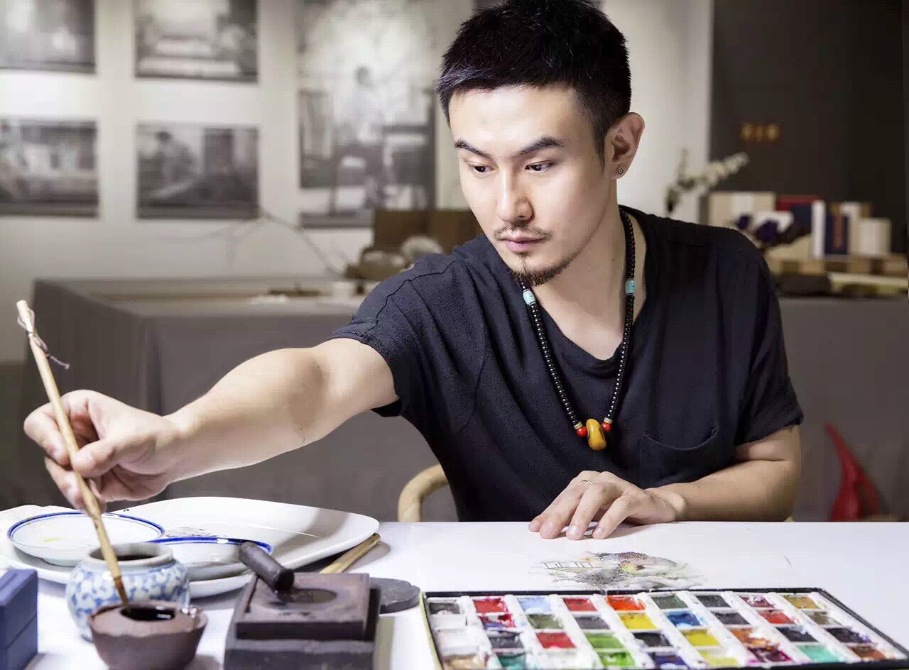 陈雍是80后,是中国美术学院中国画系的毕业生。每年他都会拿出半年左右的时间,在景德镇专门从事关于陶瓷的创作,亲自设计、绘画、烧窑。