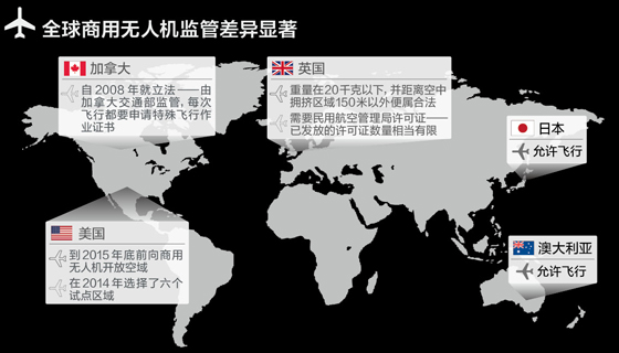 还有个更重大的问题,那就是监管政策。为了保证安全飞行,DHL和德国地方政府部门进行了合作,在北海上空划出一个特定空域,专供快递无人飞机飞行,只有在本地区没有民航客机经过时,快递飞机才能起飞,但不得飞跃居民住宅的上空,以免货物跌落砸伤地面人员。随着无人机应用越来越广泛,这样的例子不会是少数。美国就要求联邦航空管理局在2015年9月前出台法规,允许商用无人机使用公共空域。