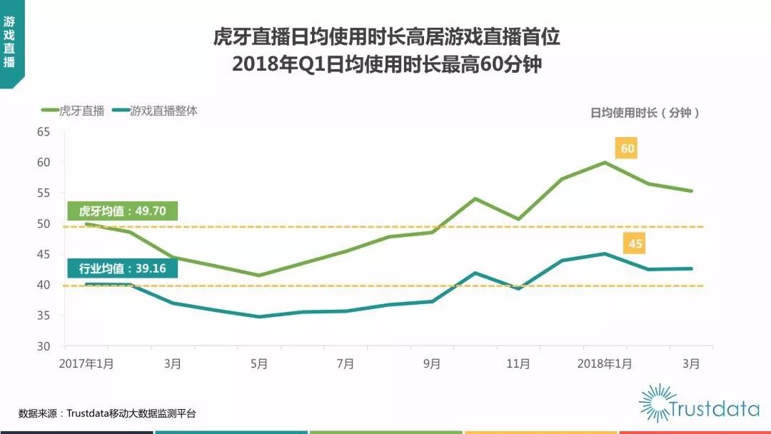 根据猎豹大数据2018年Q1的统计,虎牙直播的周活渗透率达到0.47%,排名游戏直播类的第一名,而其周人均打开次数和日人均在线时长更是高达63.8次和31.2分钟,这样的数据足以说明虎牙平台上优质内容和主播对用户的巨大粘性。