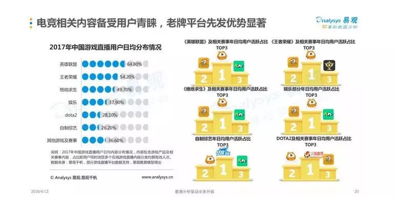 根据易观的统计报告,2017年游戏直播用户已经突破2亿,63%的用户日均观看时长大于2小时,这种用户粘性所形成的对用户游戏内容消费决策产生的影响可以说是巨大的。