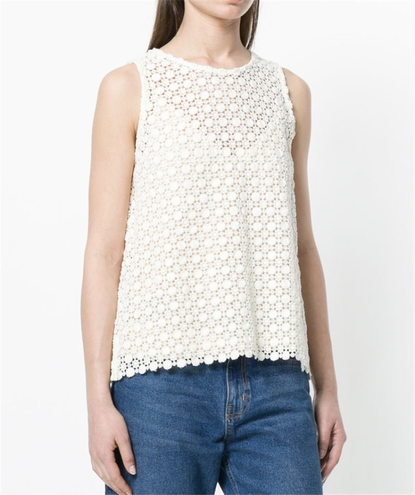 如果觉得编织的上衣缝隙较大,可以在衣服里穿一件简单凉快的小吊带衫,既可以防止走光,又增加了舒适度。