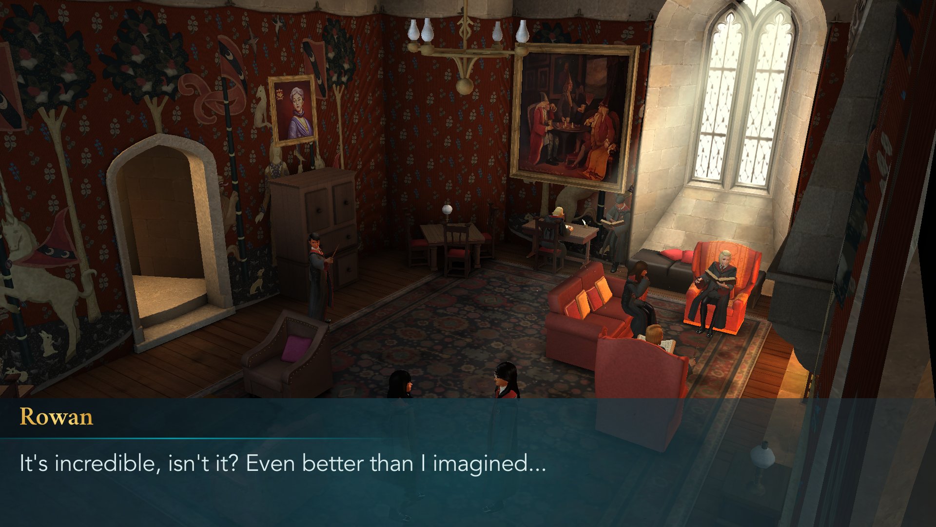 在一个星期内,我成功完成了霍格沃兹一年级的课程,进入了二年级。这一“学年”里,“我”交到了两位好朋友:像赫敏一样的学霸Rowan和像纳威一样总是没有自信的Ben。完成了魔药课、魔咒课和飞行课的课程学习,掌握了一些咒语,并且帮助我所在的格兰芬多学院获得了第一年的学院杯。随着年级的增长,还会有更多的课程向玩家开放,玩家也能够进入更多的场景。比如第二学年将增加变形课,并开放校医院场景。第三学年还会增加草药学。