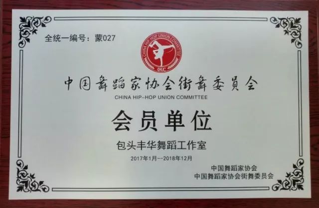 舞蹈家协会街舞委员会将为会员单位发放证书