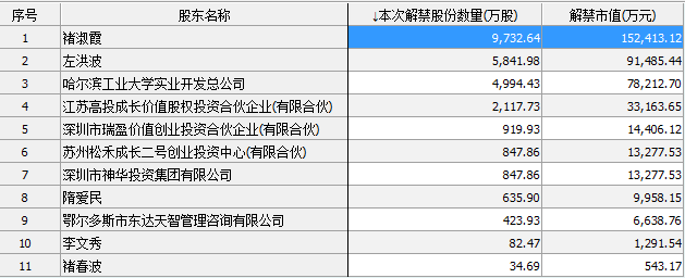 从解禁股份类型来看,首发限售股解禁有13家,定向增发机构配售股份有17家,8家股权激励限售股份解禁,1家追加承诺限售股份上市流通和1家定向增发及首发原股东限售股份。