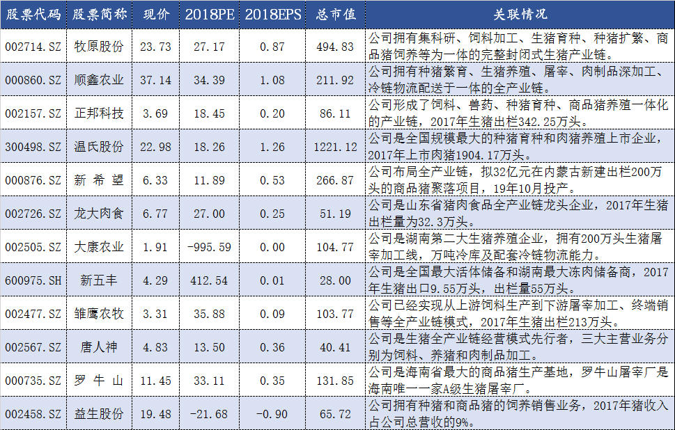 界面新闻整理了部分猪产业链概念股。
