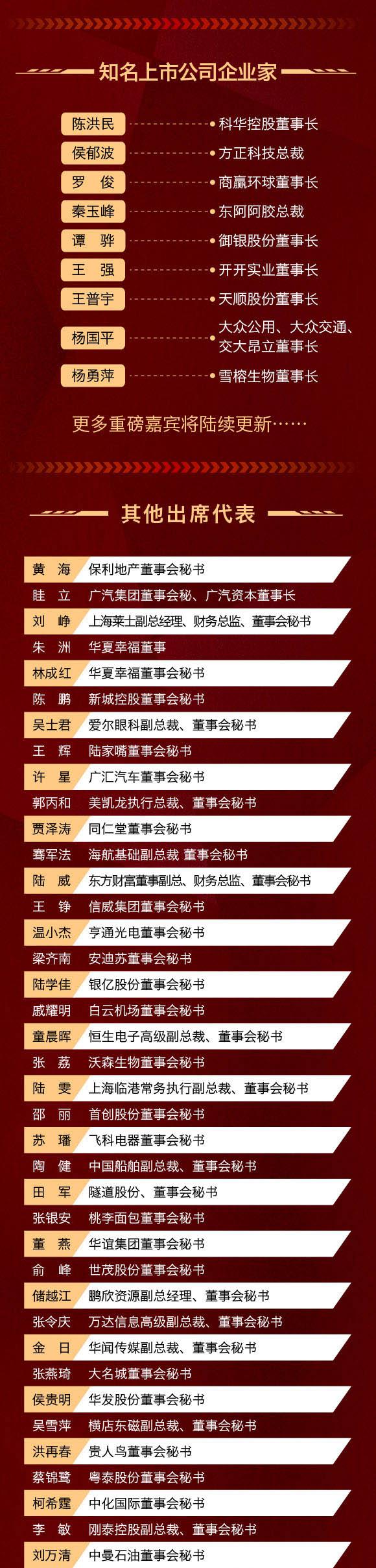 在 “董秘下午茶”环节,将邀请到8位知名董秘登台,为大家分享金融开放时代的市值管理。圆桌由金牌董秘金泽清主持,嘉宾包括:龙宇燃油董秘金闽丽、方正科技总经理、董秘侯郁波、张家界副总裁、董秘金鑫、华闻传媒副总裁、董秘金日、大众公用副总经理、董秘金波、畅联股份董秘、总经理助理沈侃、康达新材副总经理、董秘沈一涛。
