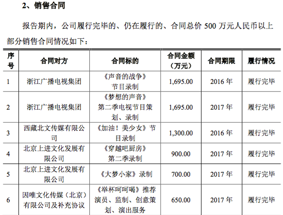 这三档节目的出场费都不算低,根据合同上显示的金额,《穿越吧厨房》录制费用900万元、《大梦小家》录制费用700万元、《举杯呵呵喝》录制费用650万元。