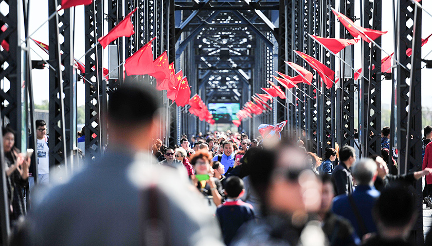 这是中朝鸭绿江大桥,自建成后迟迟没有通车。如今,大桥的另一端隐约响起改革的声音,丹东已经躁动,准备迎接对面的客人,以及这种改变所预示的商机。