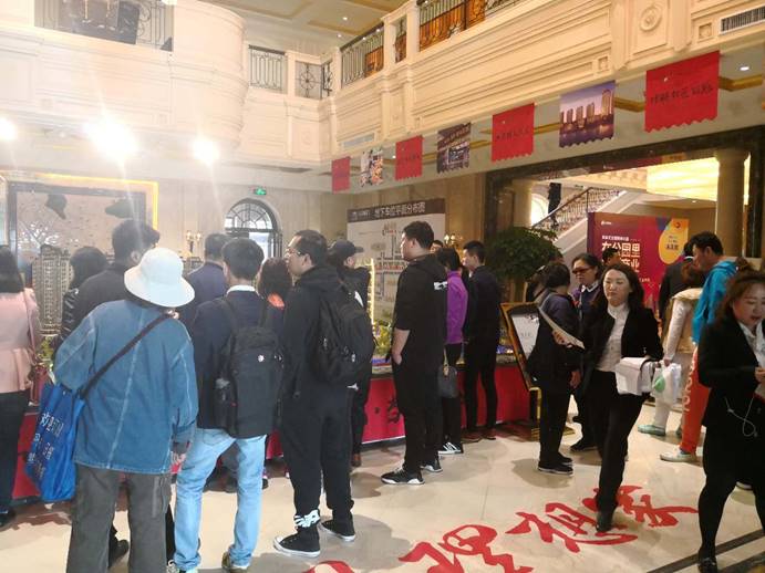 有不少购房者是组团来的,来到之后听了没几句就一起去看房了。