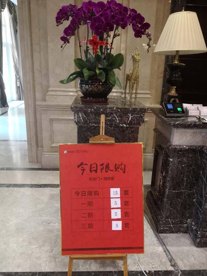 政府尚没有出台限购政策,滨江·凯旋门自己宣布限购了。置业顾问给出的理由是:卖得太快了!房源已经不多了!