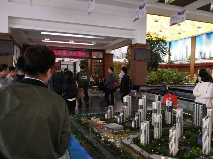 滨江·凯旋门项目是典型的江景房,紧邻鸭绿江。这个项目可以说是江边最火爆的楼盘之一,视野开阔的顶层江景房售价已经达到7800元。在朝鲜宣布将要改革开放以前,这个楼盘的均价只有4000多元。由于购房的人太多,置业顾问根本无暇招待每一个前来看房的人。