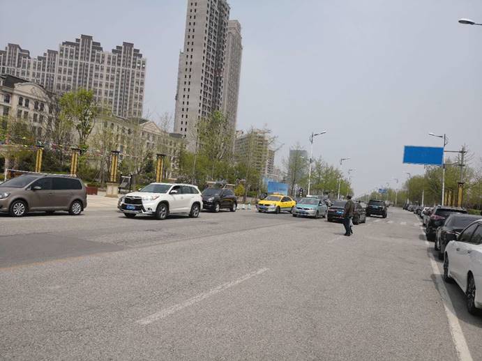 夕阳西下,正值下班时间,丹东新城的街道虽然宽阔,但人流与车辆并不多。